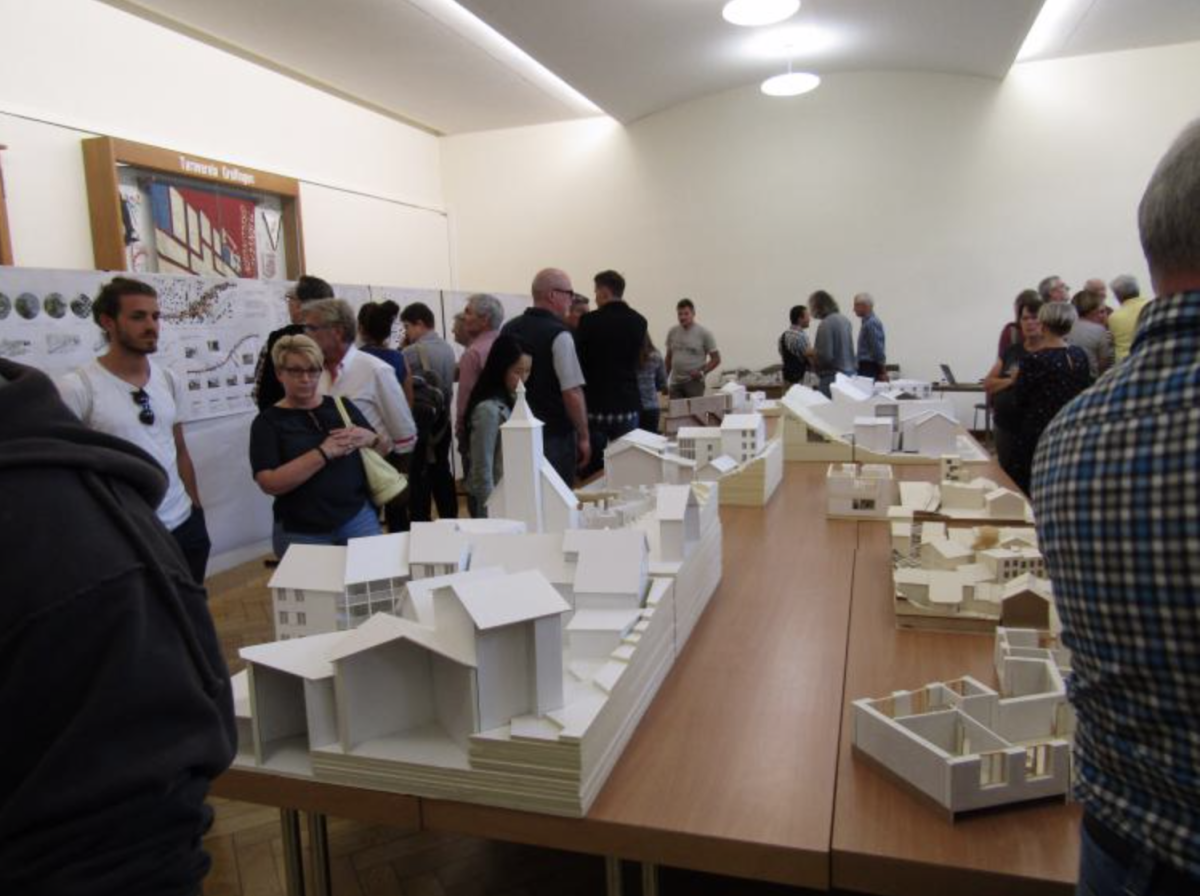 Die von Studierenden der FHNW im Rahmen der Semesterarbeit im Bachelor erarbeiteten Vorschläge für das Zentrum von Grellingen werden an einer öffentlichen Veranstaltung in Grellingen von der Bevölkerung intensiv begutachtet und diskutiert.